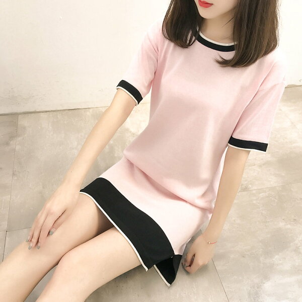 出自:線上購物分享 - FINDSENSE G5 韓國時尚 圓領 針織衫 連身裙 短袖 寬鬆 打底 短裙